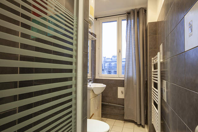 尼斯的一室公寓的租金在巴黎的东北部。这是一个舒适的平附近著名的特休肖蒙两个人 - Rue d'Alsace-Lorraine。