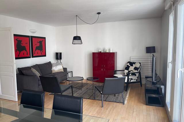 这套公寓面积为70平方米,有两间卧室。它位于没有电梯的大楼的第5层。这座18世纪的建筑的入口处装有对讲机。这里有一个客厅,一个美式厨房,两间卧室和一个浴室。