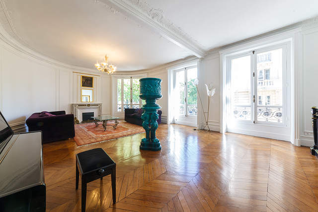 Surface - 315 square meters; parquet flooring; fireplace; moldings; 3rd floor of a building.