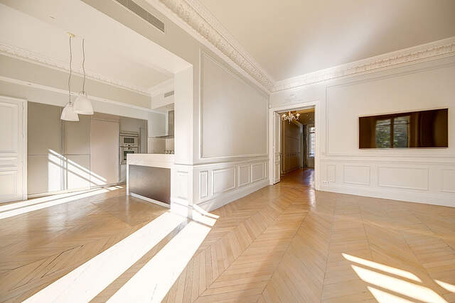 位于蒙田大道附近,黄金三角区核心地段的大型公寓待售。坐落于典雅建筑的4层。