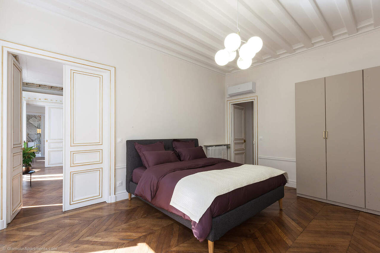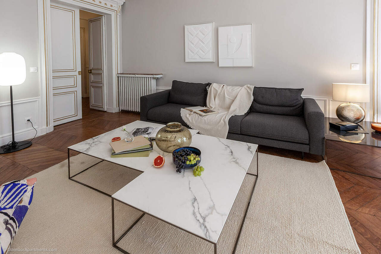 这套时尚而豪华的四居室公寓位于巴黎著名的第八区Rue de Castellane。