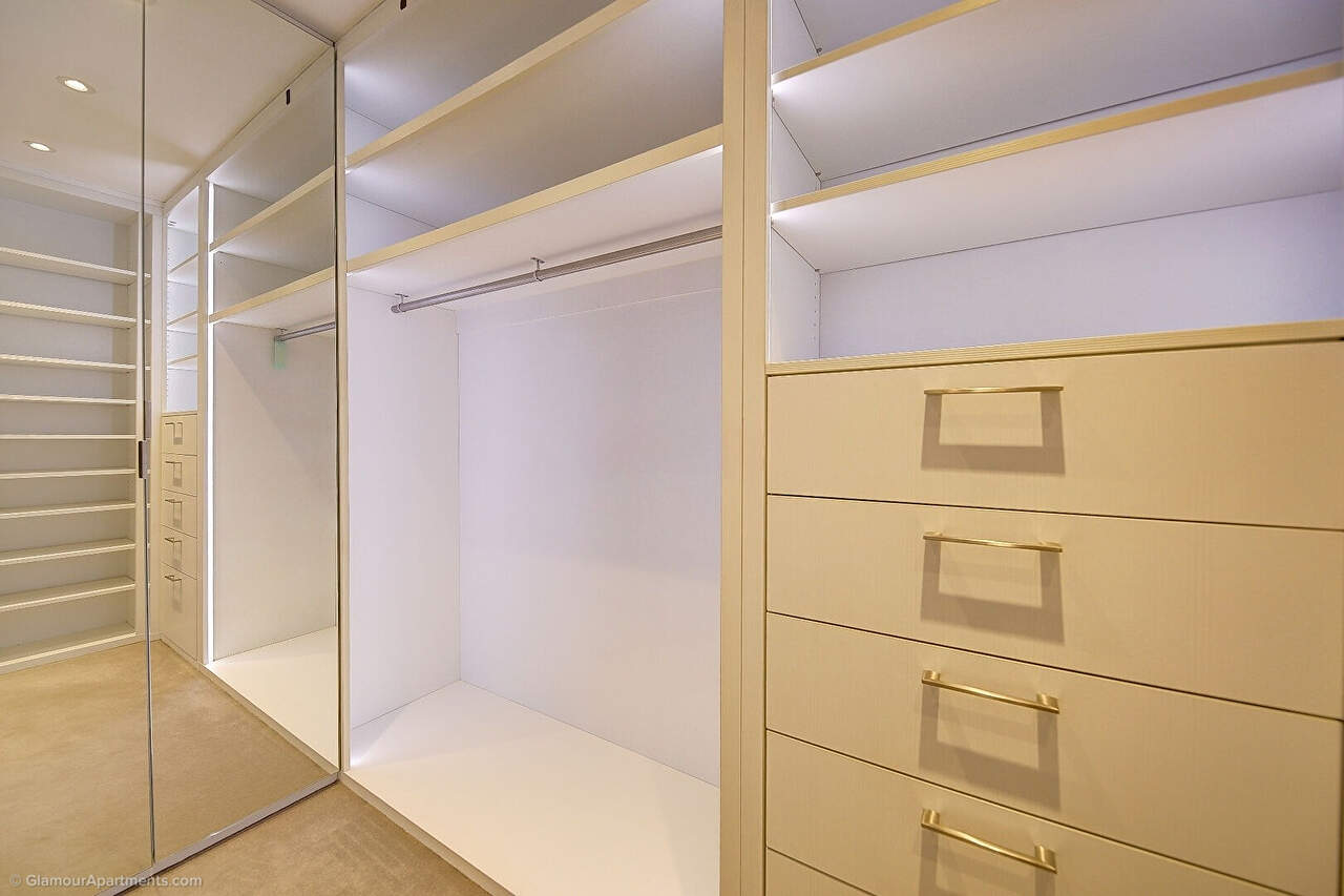 户型布局以宽敞的玄关和带壁炉的正式客厅为中心,客厅可俯瞰花园美景。客厅与现代开放式厨房相连。公寓设有三间卧室,每间均设计为独立套房,配有专属浴室或淋浴间、卫生间及步入式衣帽间,此外还设有独立洗衣房和地下室酒窖。整套公寓共设六个主要起居空间,各区域既保持私密性,又与客厅保持着合理的连通性。